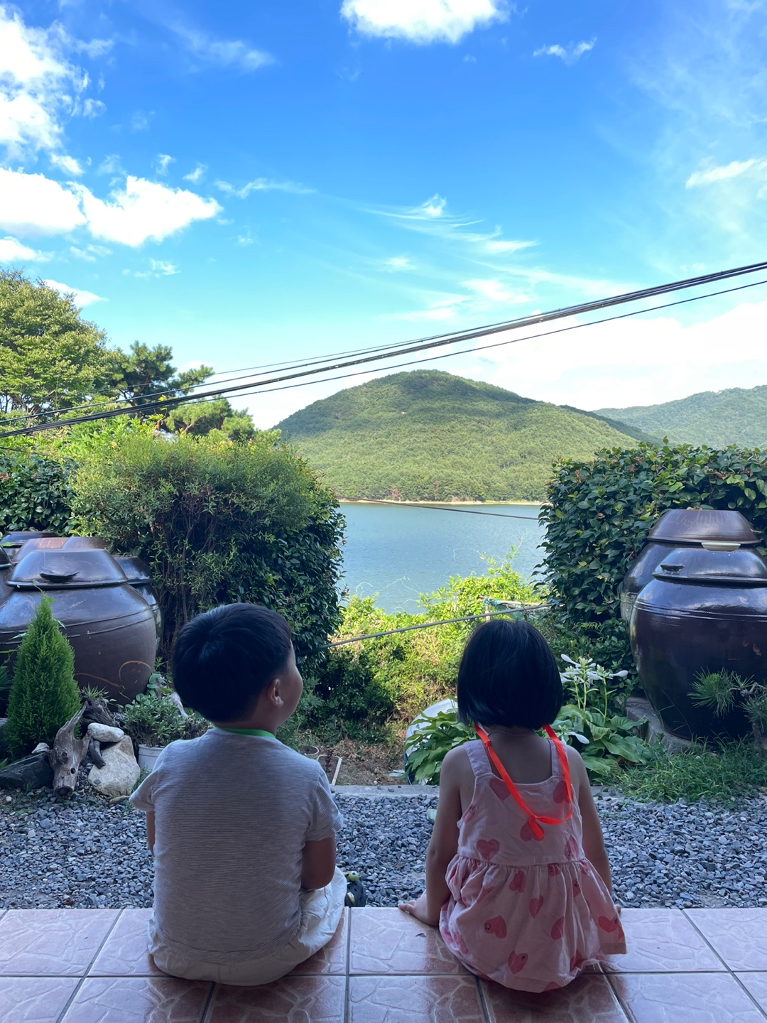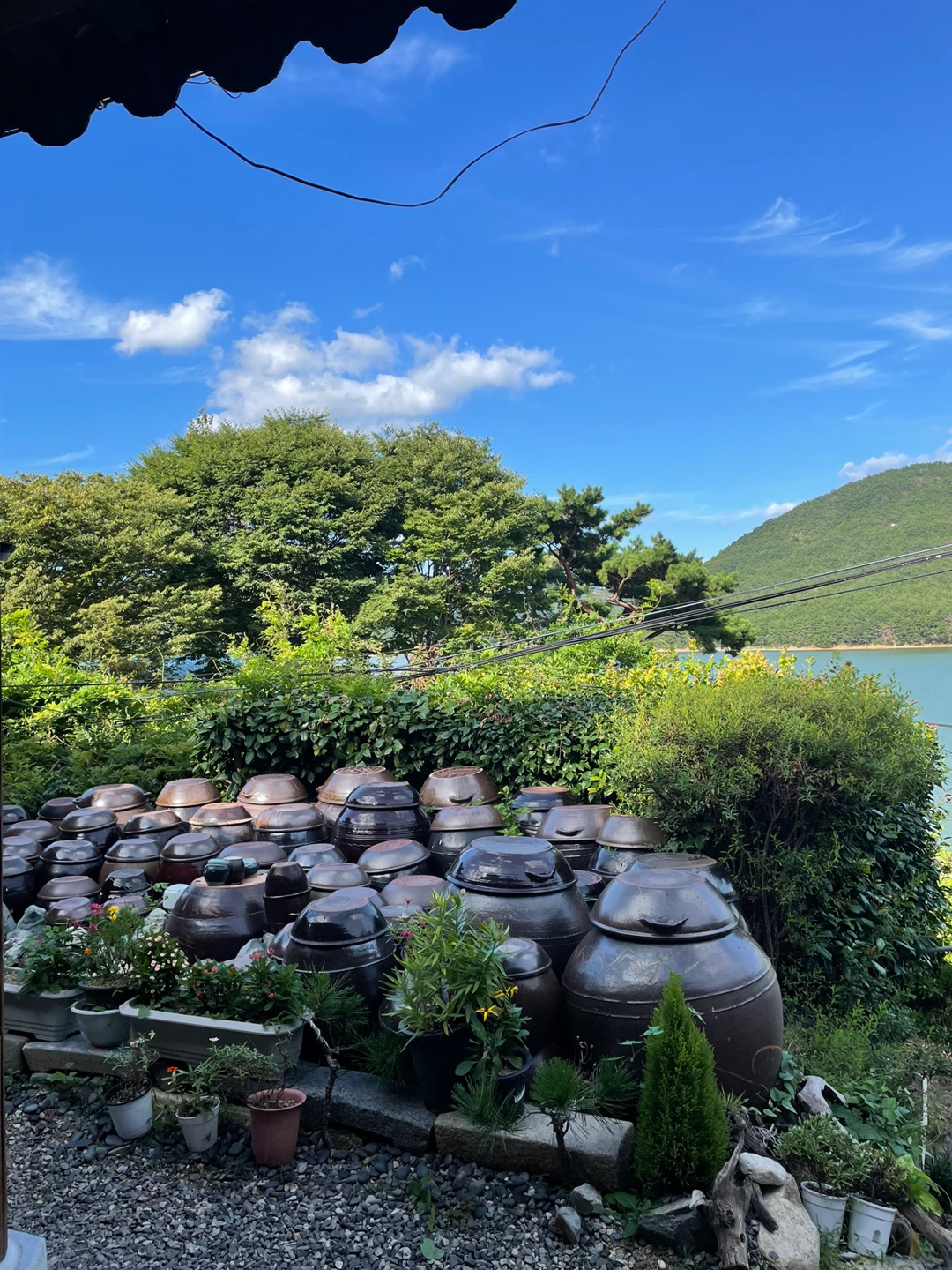 자갈마당에 장독대와, 저멀리 보이는 회동저수지에 푸른 산까지.