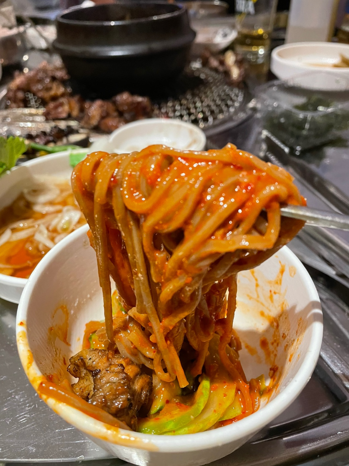 비빔막국수는 남은 양념돼지갈비와 함께~