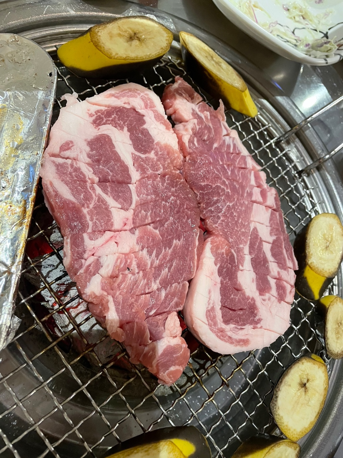 바로 다음고기는 두툼목살과 돼지생갈비에요